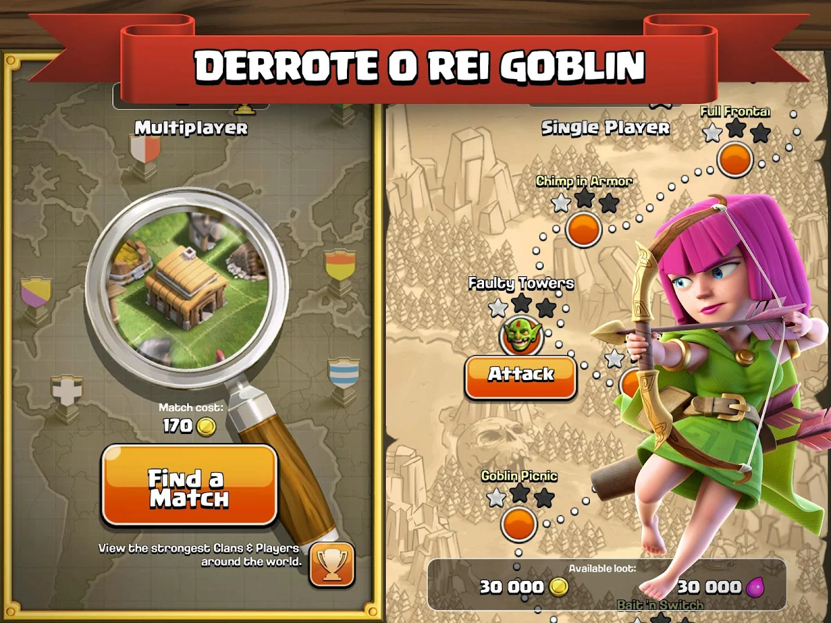 Mobilize bárbaros espumando de raiva com seus bigodes gloriosos e magos piromaníacos, construa seu exército e leve o seu clã à vitória! Construa sua aldeia para combater invasores, batalhe contra milhões de jogadores do mundo inteiro e desenvolva um clã poderoso com outros jogadores para destruir os clãs inimigos.
